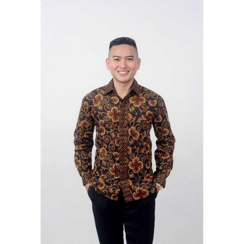 Grosir Pakaian di Kabupaten Buton Utara Cod - Dt Collection - Kemeja Batik Pria / Cowok Motif Sogan Putri Malu Cokelat Lengan Panjang dari Tidak Ada Merek Kota Surabaya
