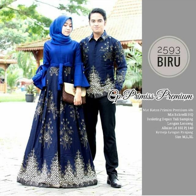 Name: Couple Long Dress Maxi Batik Primis Premium Copel Gamis Sarimbit 2593 Biru Hitam