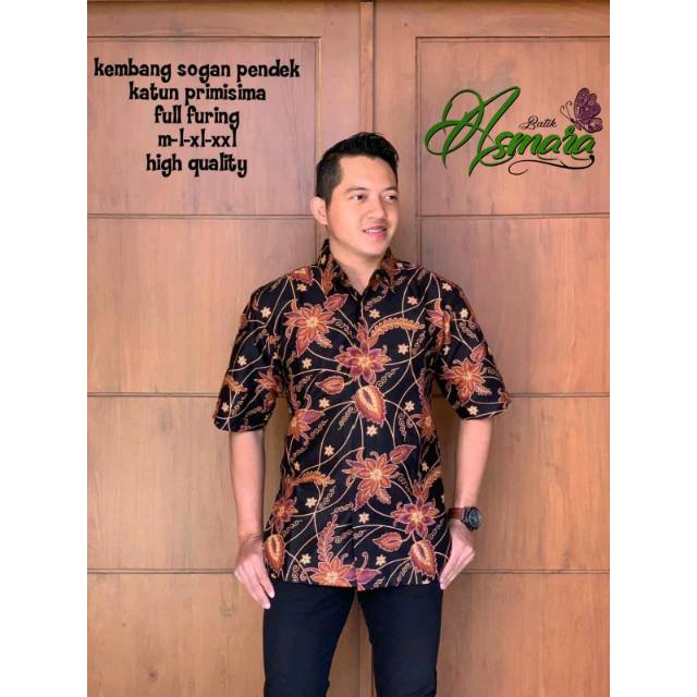 Name: Batik Solo Kembang Sogan Pendek Kemeja Pria Katun Halus Sragenan Full Furing