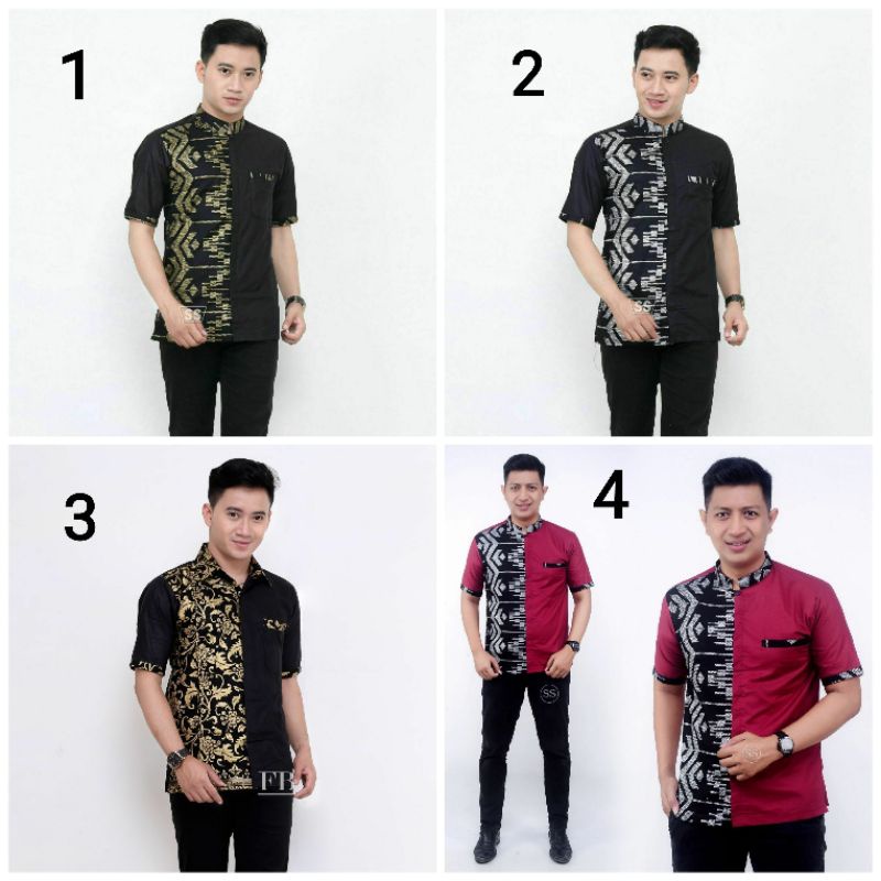 Name: Risna Batik Hrb026 Kombinasi Batik Polos Warna M L Xl Pendek Batik Prada Pekalongan Masa Kini Keren