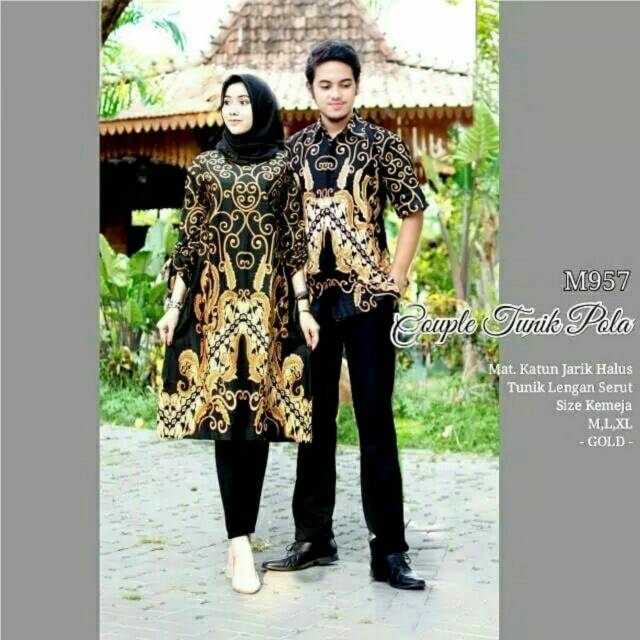 Name: Couple Tunik Pola Batik Sarimbit Model Dress Tunik Hem Pendek Warna Hitam Cokelat